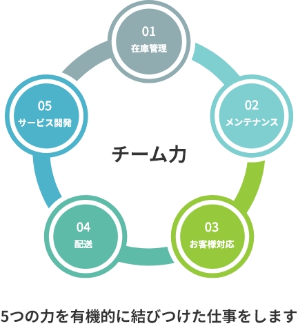 私達の事業は、物や事にサービスを付加して必要な時にご利用い ただくレンタル事業を展開しています。